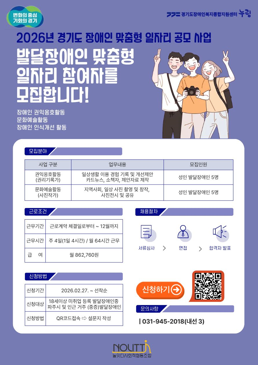 [모집] 발달장애인 맞춤형 일자리 참여자 모집