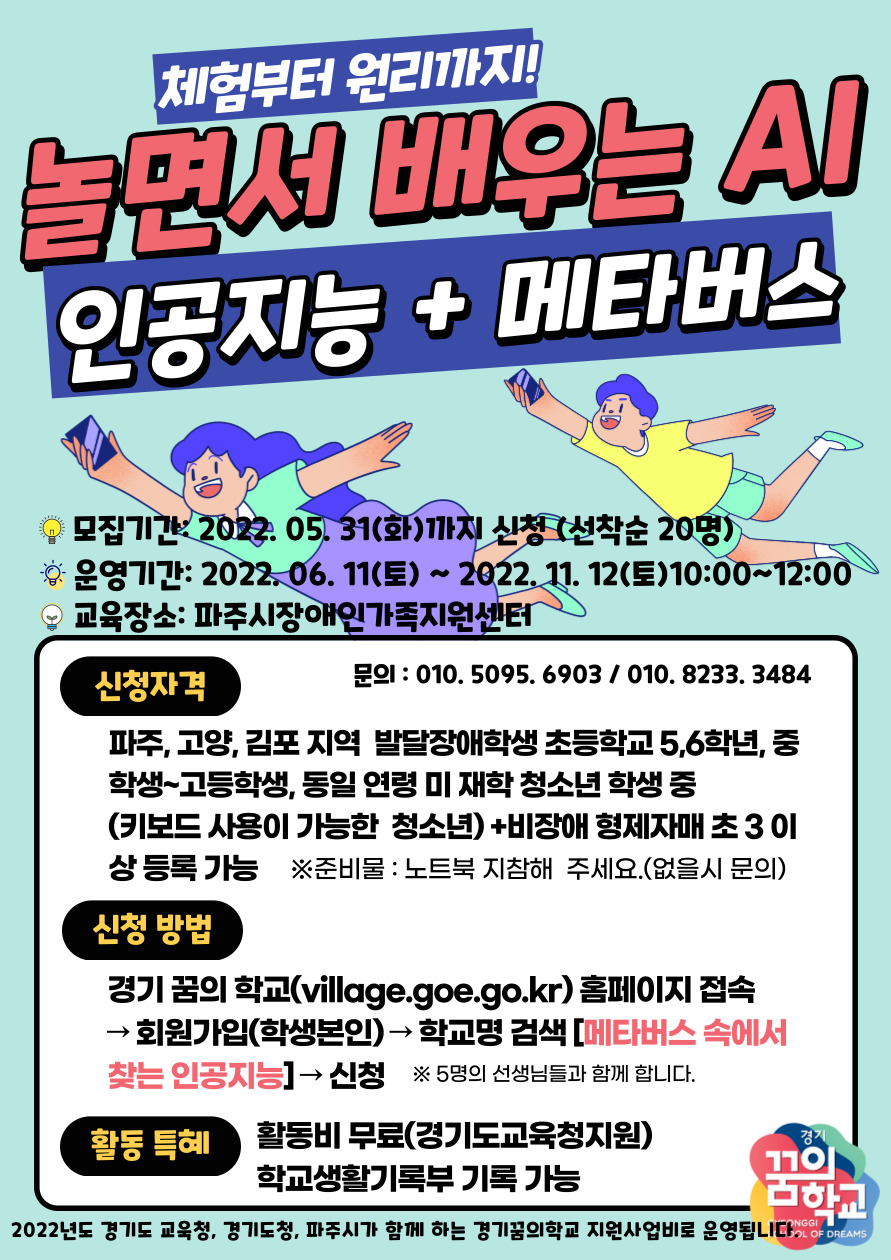 자세한 사항은 모집요강, 운영계획서와 꿈의 학교 홈페이지(village.goe.go.kr) 참고 부탁 드립니다.