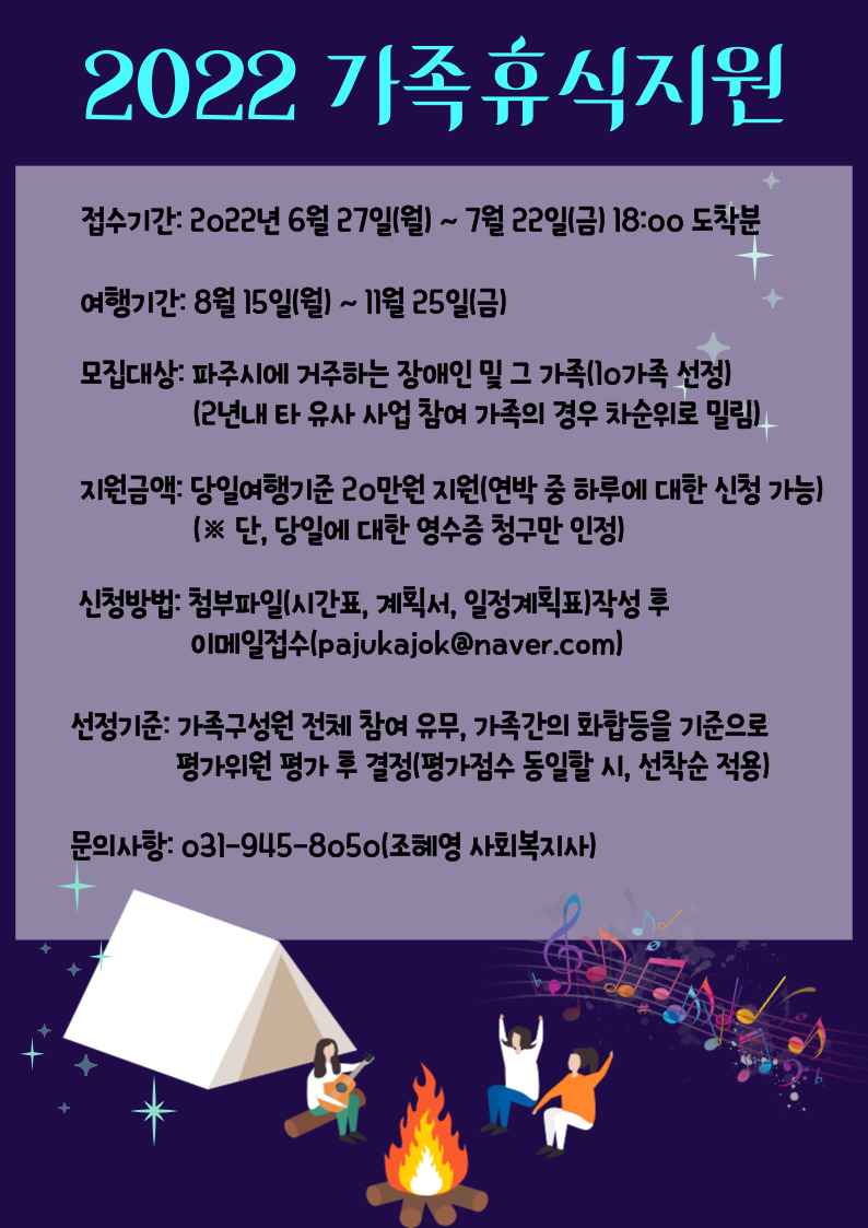 [모집마감] 2022년 파주시장애인가족지원센터 가족휴식지원사업 프로그램 참여가정 모집