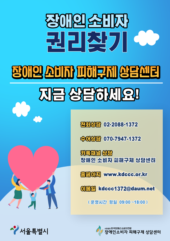 장애인소비자를 위해 [장애인소비자 피해구제 상담센터]를 개소하였습니다.