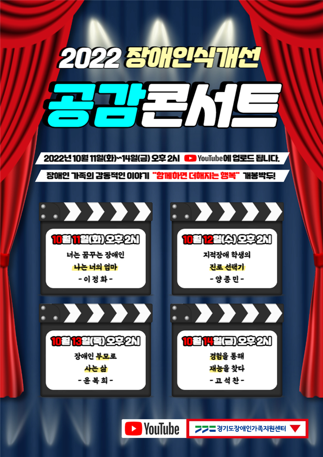 다. 시청방법 : 유튜브->경기도장애인가족지원센터 검색 후 시청(좋아요와 댓글을 남겨주세요