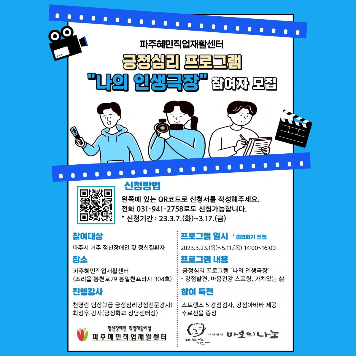 [홍보] 파주혜민직업재활센터 긍정심리프로그램 [나의 인생극장] 프로그램 참여자 모집