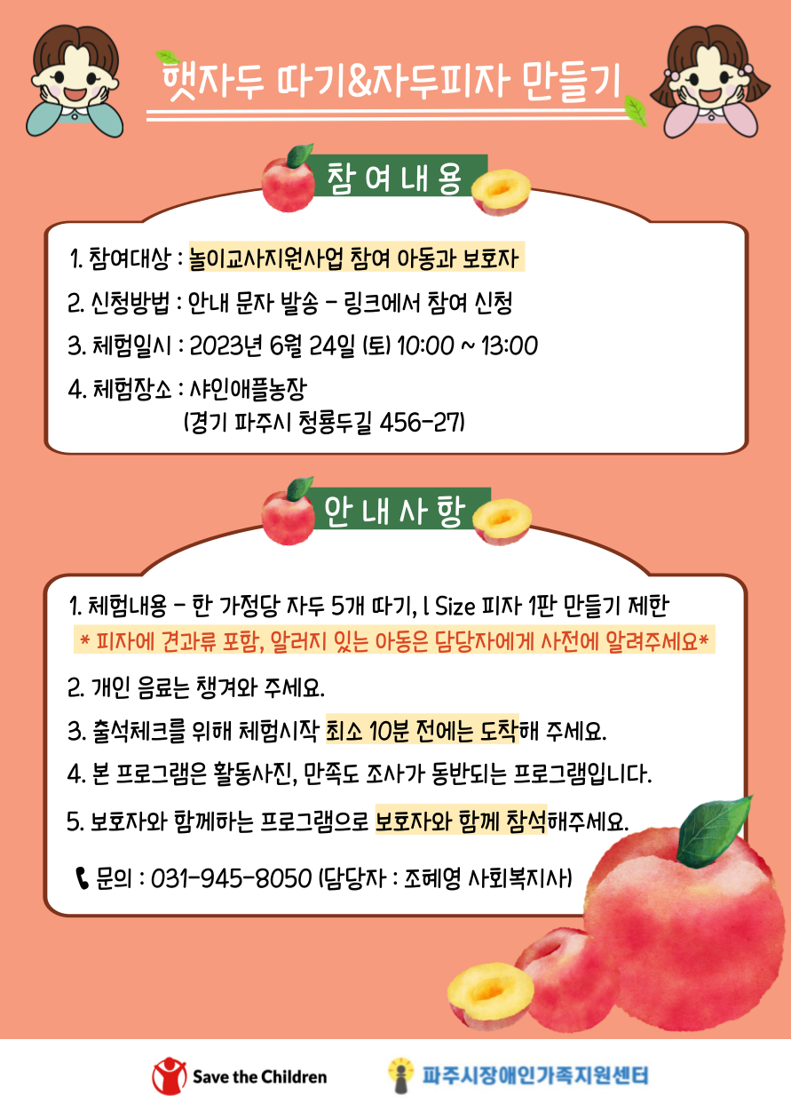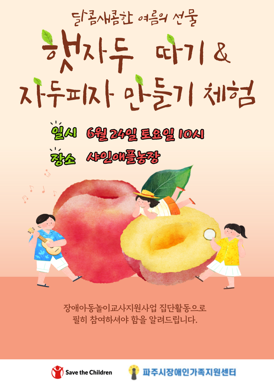 [홍보] 장애아동놀이교사지원사업 대집단활동 "햇자두 따기& 자두피자 만들기 체험"