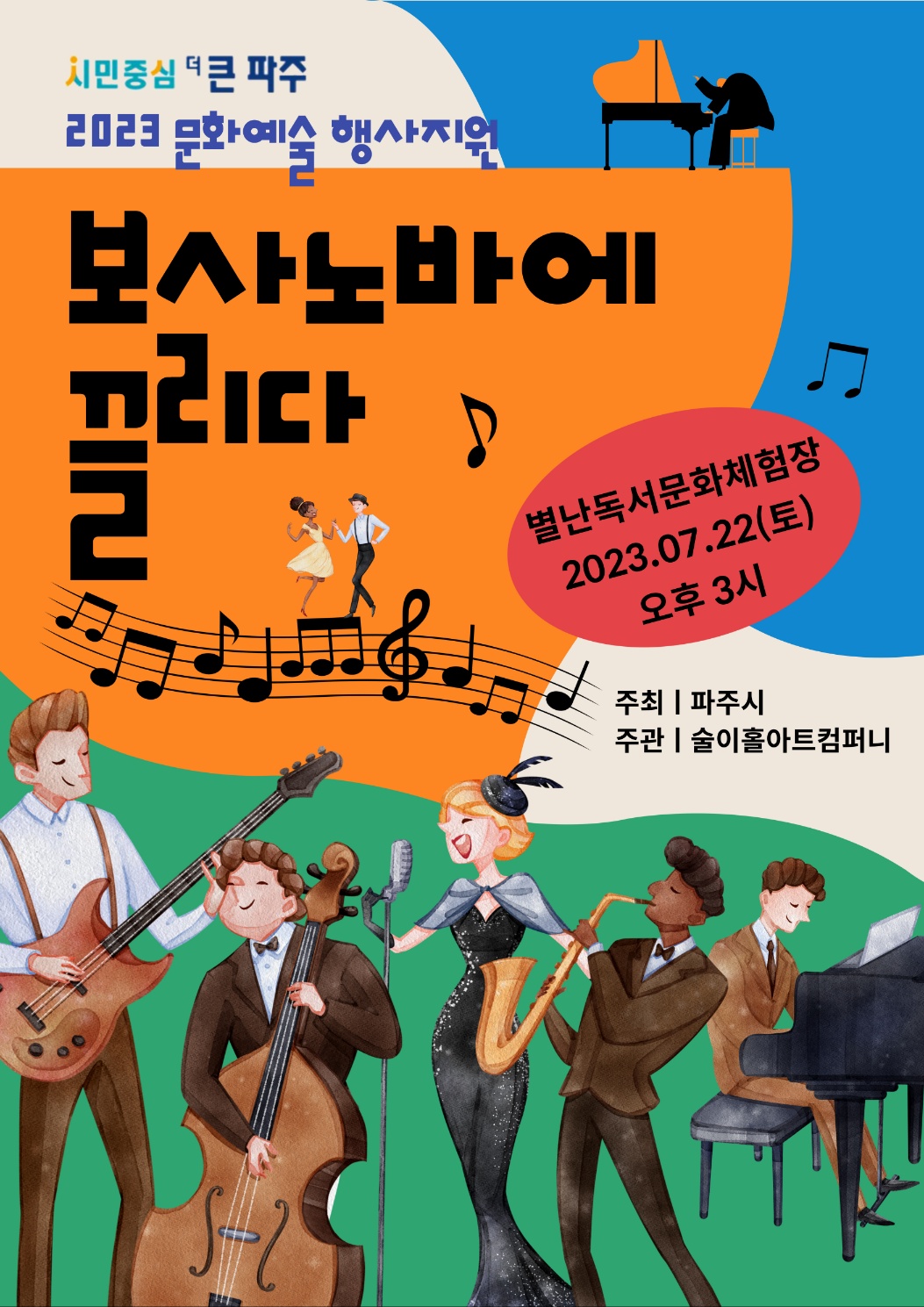 - 수준 높은 보사노바 연주를 감상하고 보사노바에 대한 이해를 높일 수 있는 새로운 공연예술 콘텐츠를 시민에게 선보이고자 합니다.