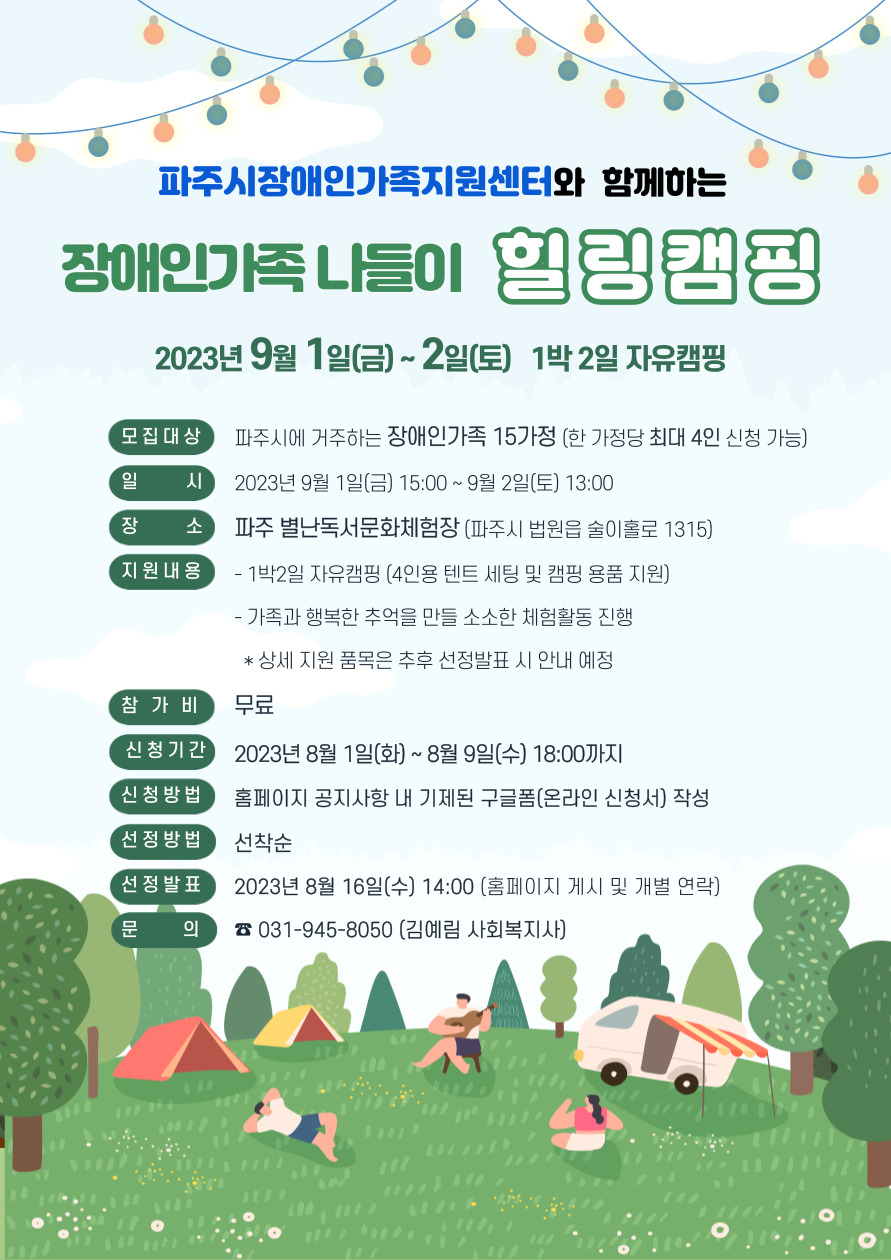 [모집] 장애인가족 나들이 '힐링캠핑' 참여 가정 모집