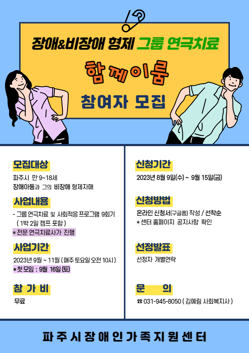 [모집] 장애&비장애 형제 그룹 연극치료 프로그램, "함께이룸" 참여자 모집
