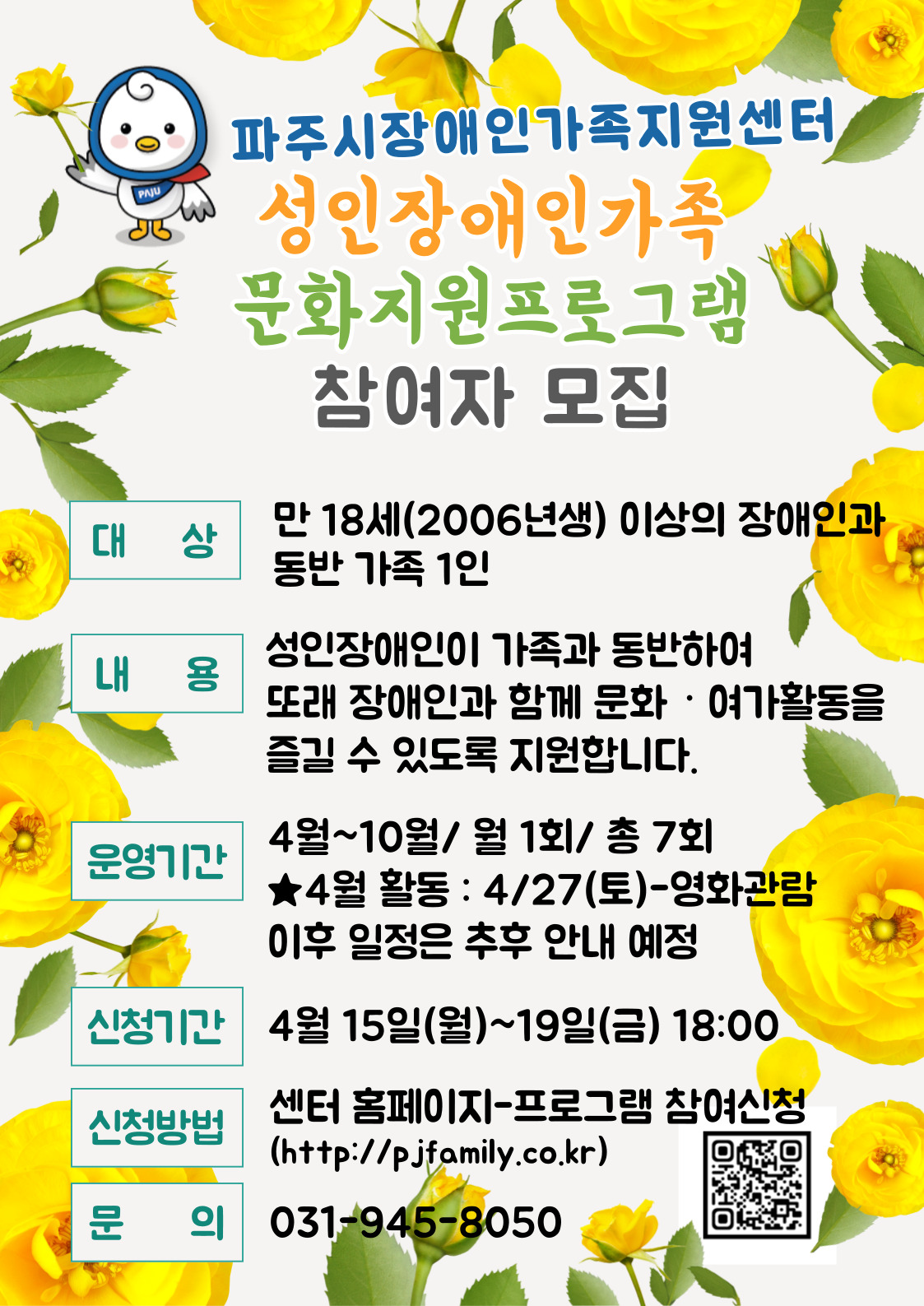 [모집마감] 성인장애인가족 문화지원프로그램 1회차 활동 참여자 모집