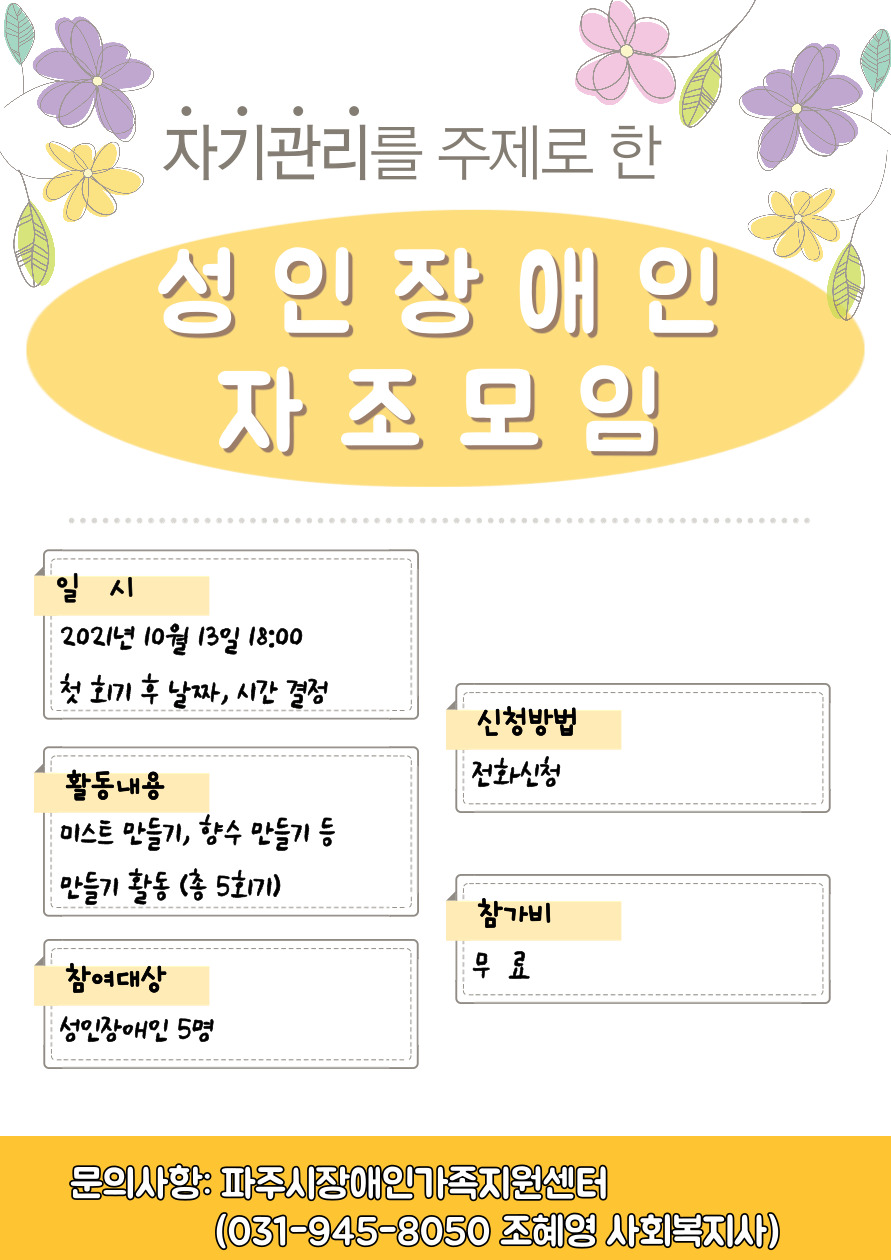 [모집마감]2021년 파주시장애인가족지원센터 성인장애인 자조모임 프로그램 참여자 모집안내