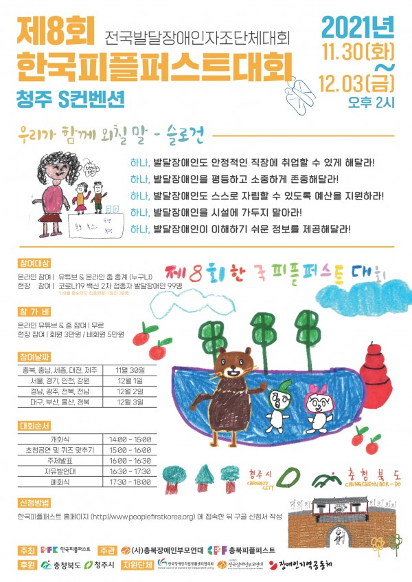 참가 비용 : ① 현장 – 한국피플퍼스트 CMS 비회원 1인당 5만원 / 회원 1인당 3만원 (국민은행 : 752601-04-312489 한국피플퍼스트 / 참가비는 본인 이름으로 입금)