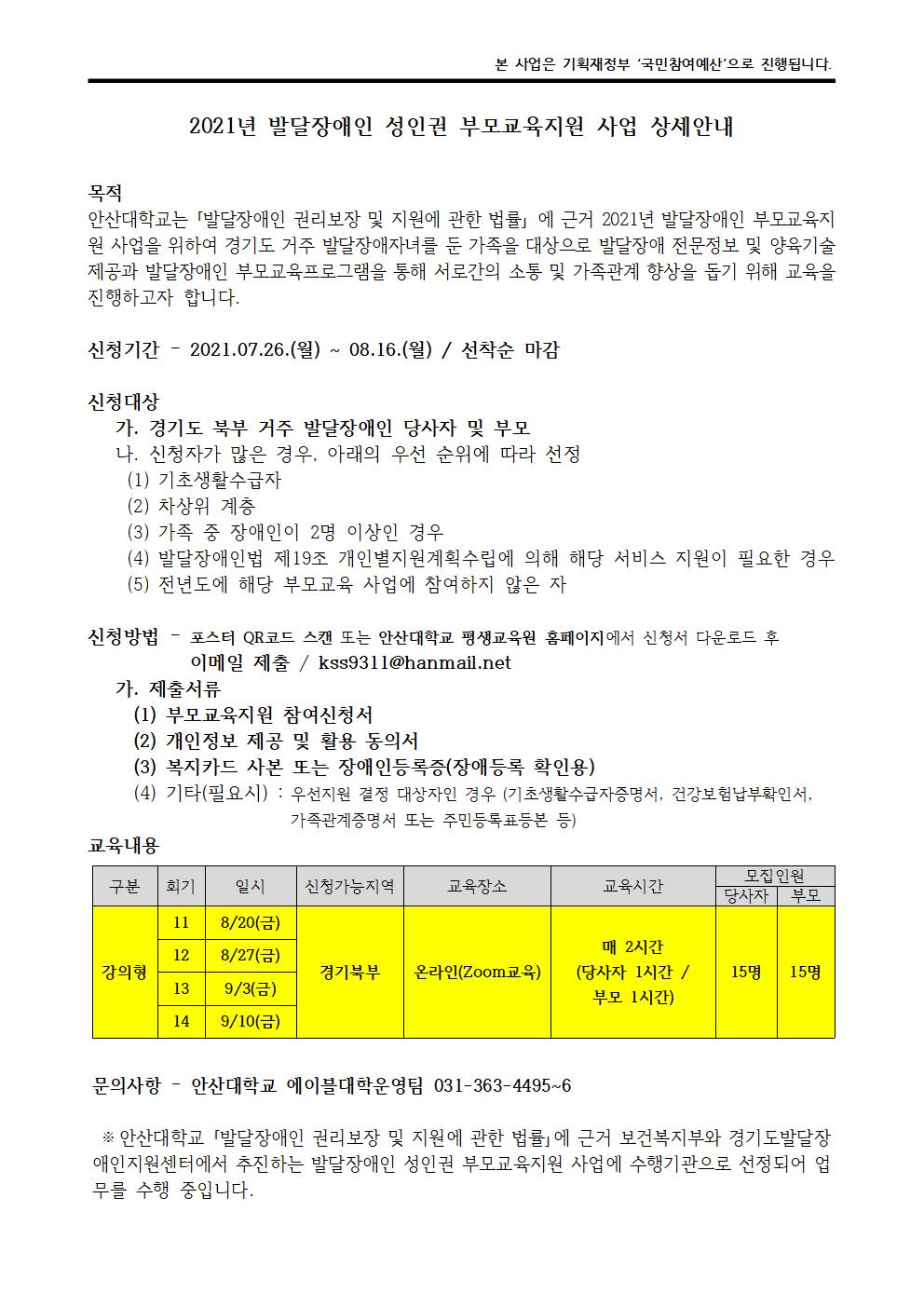 2021년 발달장애인 성인권 부모교육지원 사업