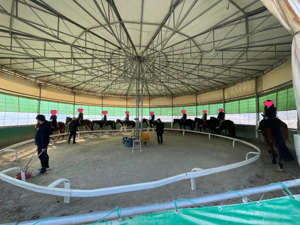 처음에는 말과 익숙해지는 시간을 갖기 위해 말을 타고 원형마장을 돌았습니다.