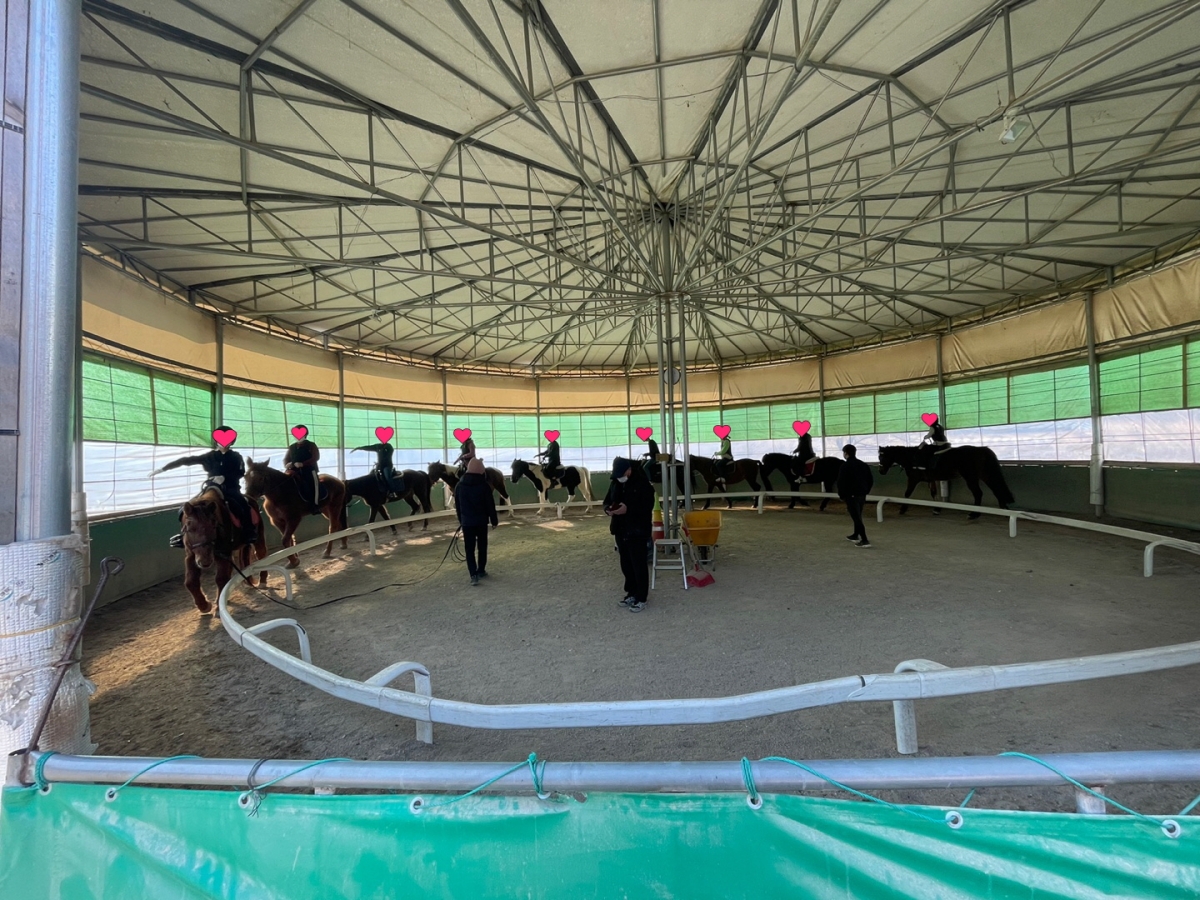 교관의 지시에 따라 초급반, 중급반 친구들이 함께 마방으로 이동하였습니다.