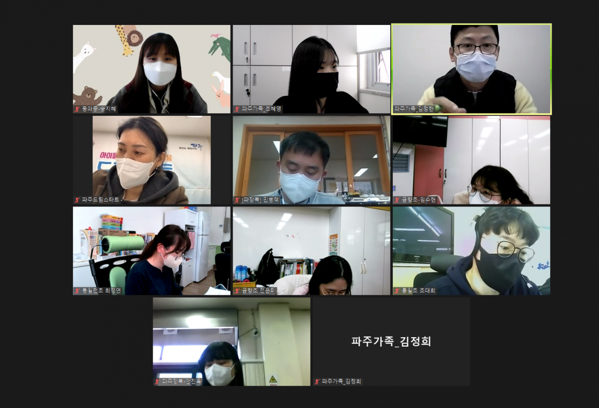 진행방법은 코로나로 인해 온라인 비대면 회의(Zoom)로 진행하였고, 참석인원은 총 10명이 참석하였습니다.