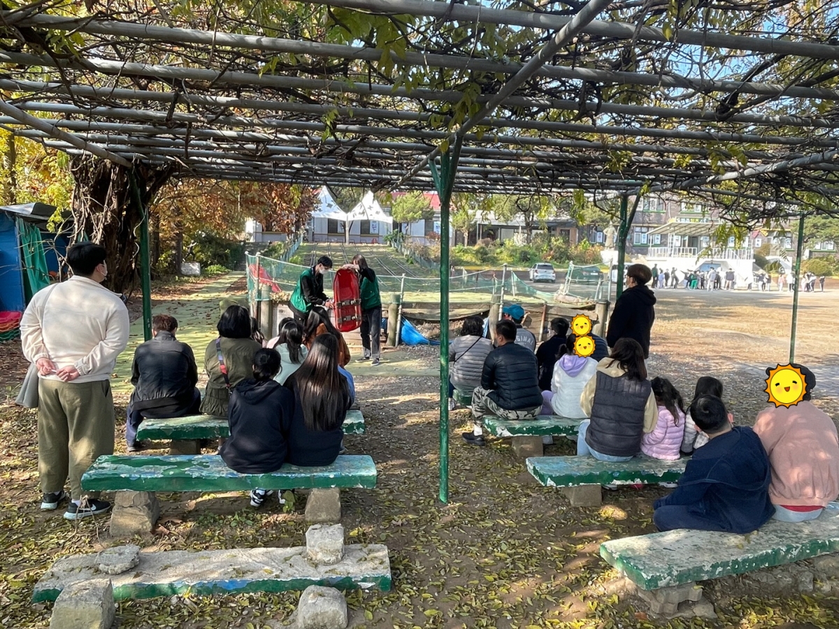 썰매타기 전 주의사항에 대한 설명 후 썰매타기가 진행되었습니다.