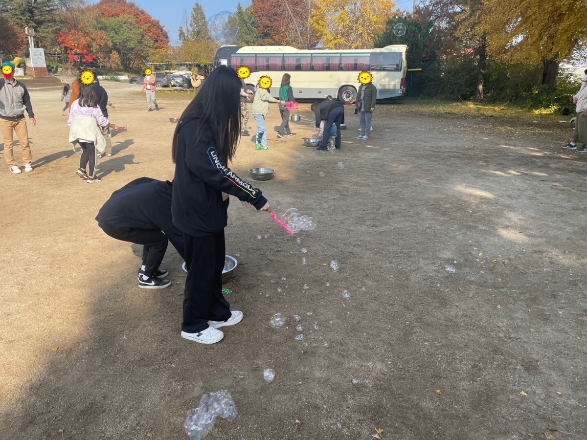 다양한 비눗방울을 만들어보고 사진 찍는 시간이 되었습니다.