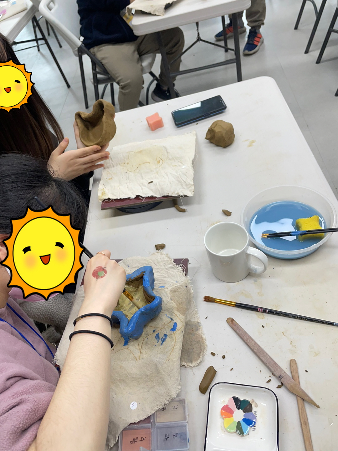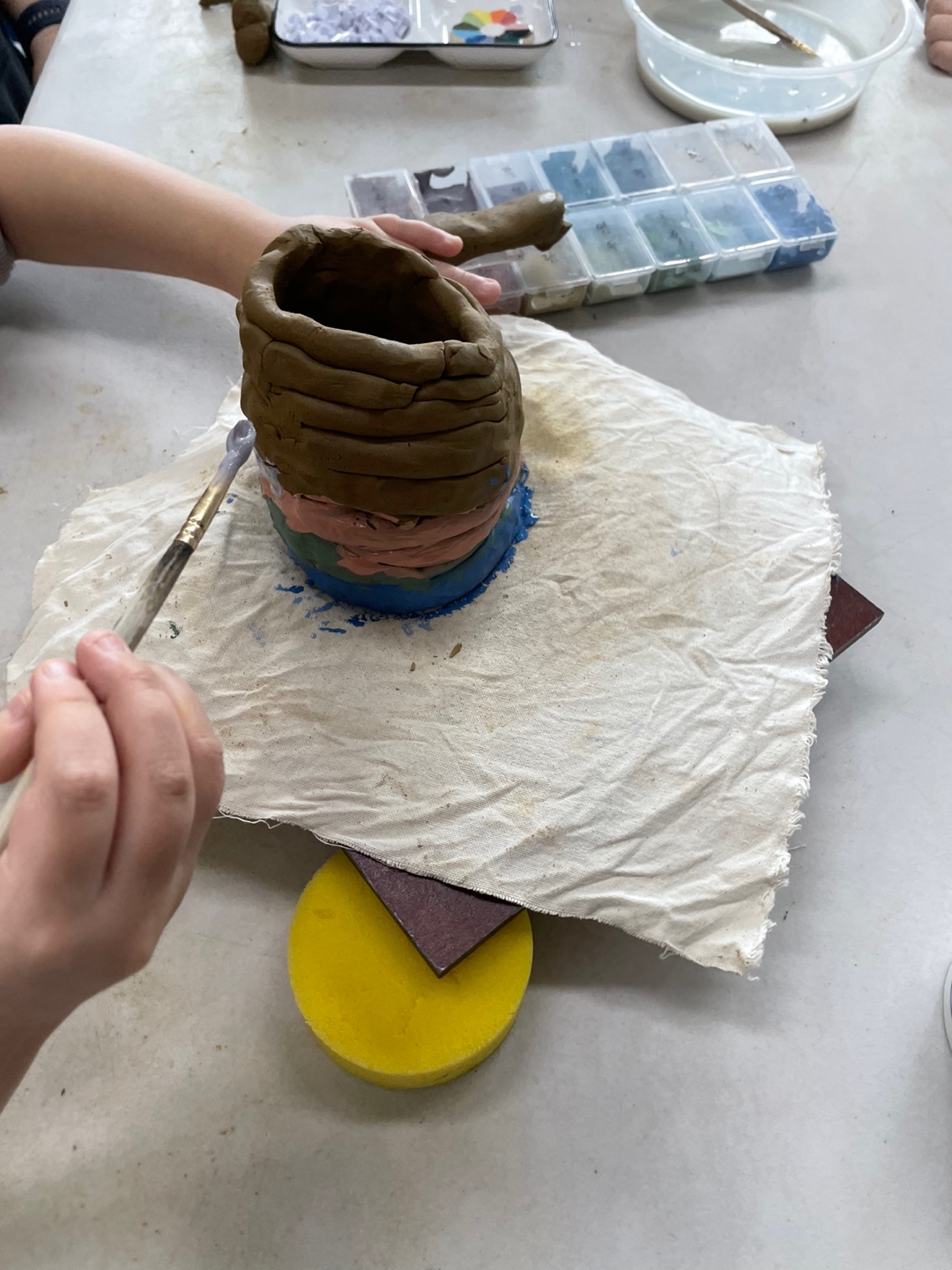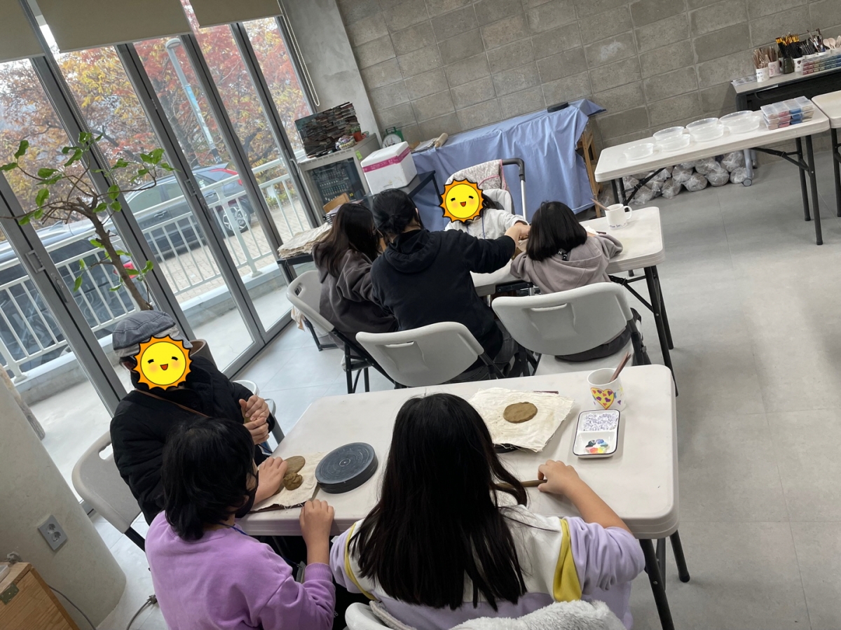 이번 회기는 ‘나만의 화분 만들기’로 지난주에 이어 한향림도자미술관에서 진행되었습니다. 준비된 옹기흙을 이용하여 원하는 모양의 화분 바닥모양을 만든 후 흙을 길게 만들어 예쁘게 쌓아올려 나만의 화분을 만들었습니다. 화분에 물을 담을 때 물이 새지 않게 하기 위해 손과 도구를 사용하여 꼼꼼한 작업도 해주었습니다. 그 후 물감으로 화분을 예쁘게 색칠해주기도 하고, 꾸미기도 하며 화분을 완성하였습니다. 화분은 완성되기까지 약 2주간의 시간이 걸립니다. 다음회기는 11월 19일 토요일에 진행됩니다.