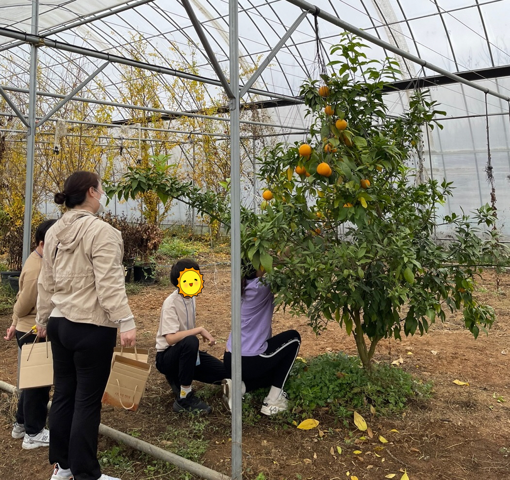 귤 수확체험은 귤나무에 달려있는 귤을 가위를 이용하여 수확하는 체험시간을 가졌습니다.