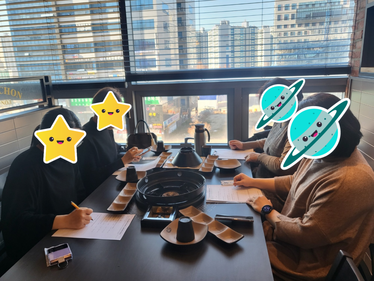 함께 식사하며 동아리 진행방향에 대한 논의, 피드백 뿐 아니라