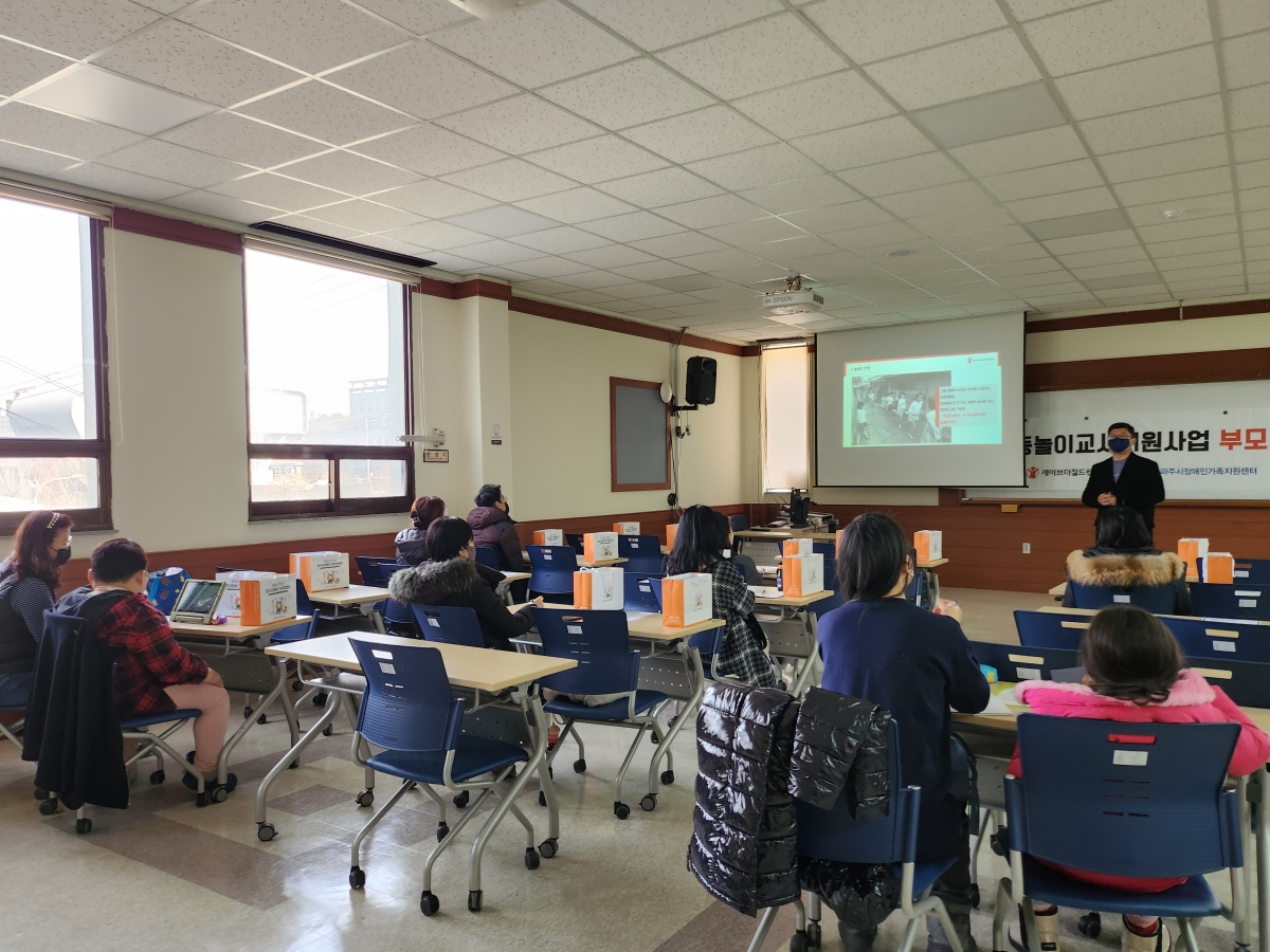 파주시장애인가족지원센터(이하 센터)는 2월 9일(목) 오전 10시 30분부터 12시 00분까지 놀이교사지원사업 참여가정을 대상으로 1차 부모교육을 진행하였습니다.