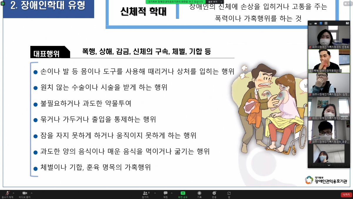 "장애인학대 예방 및 신고의무자 교육"에 비대면(Zoom)으로 참가했습니다.