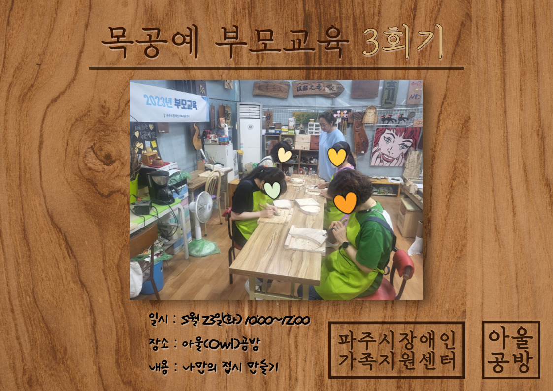 박진희 강사님의 아울공방에서 목공예 부모교육 3회기를 진행했습니다.