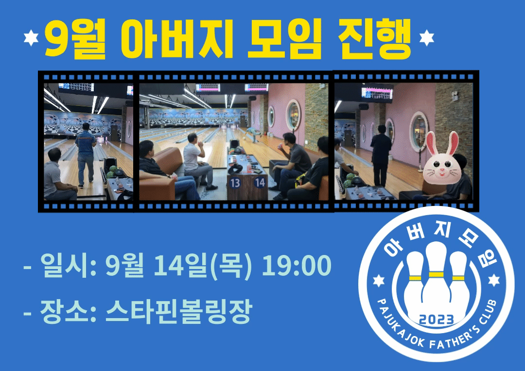 지난 9월 14일(목) 저녁 7시에 야동동에 위치한 스타핀볼링장에서 아버지 동아리 2회기를 진행하였습니다 ^^