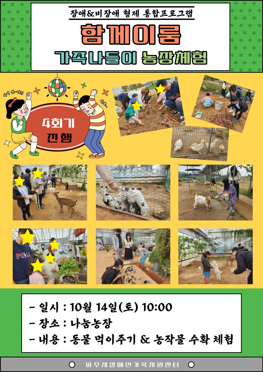파주시장애인가족지원센터는 지난 10월 14일(토) 10시에 교하에 위치한 나눔농장에서,