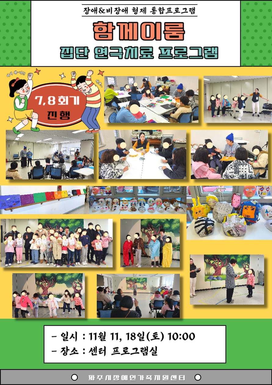 지난 11월 11일(토), 11월 18일(토)에 센터 프로그램실에서 장애&비장애 형제 통합프로그램 '함께이룸'