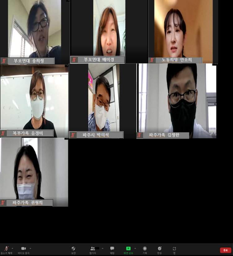진행방법은 코로나로 인해 온라인 비대면 회의(Zoom)로 진행하였고, 참석인원은 총 7명 (운영위원 6명, 간사 1명)이 참석하였습니다.
