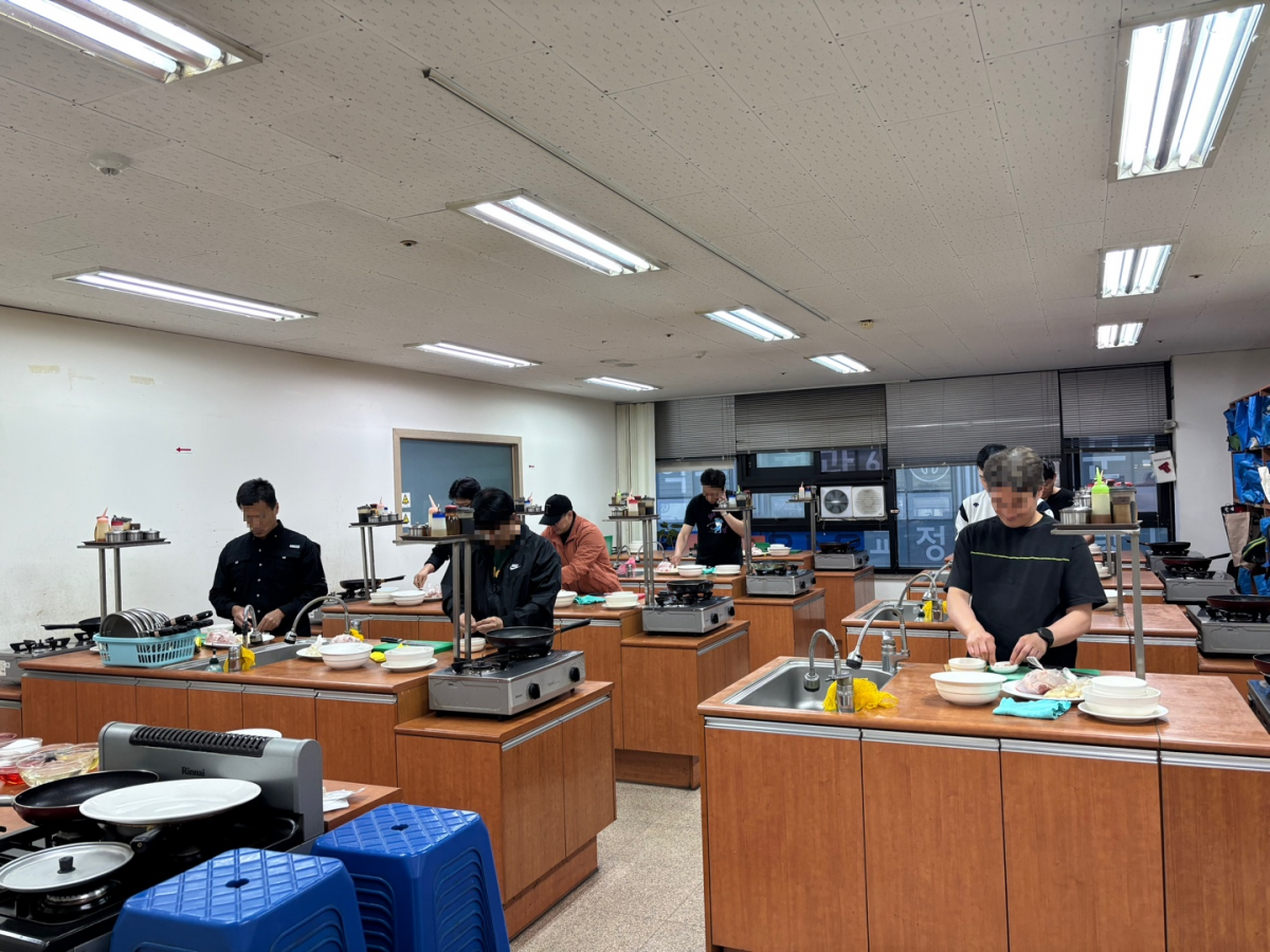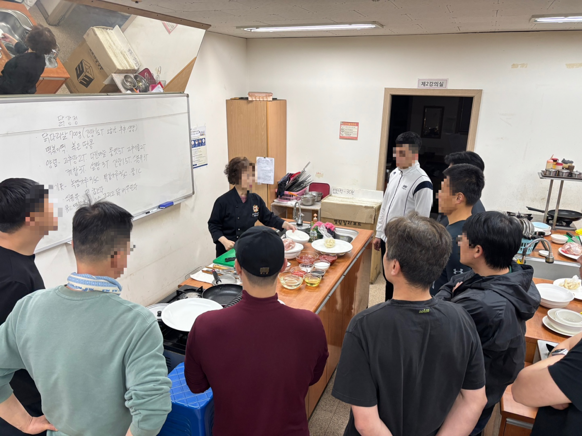 모르는것은 주변 아버님 또는 강사님에게 질문을 하며 닭강정 손질중입니다.