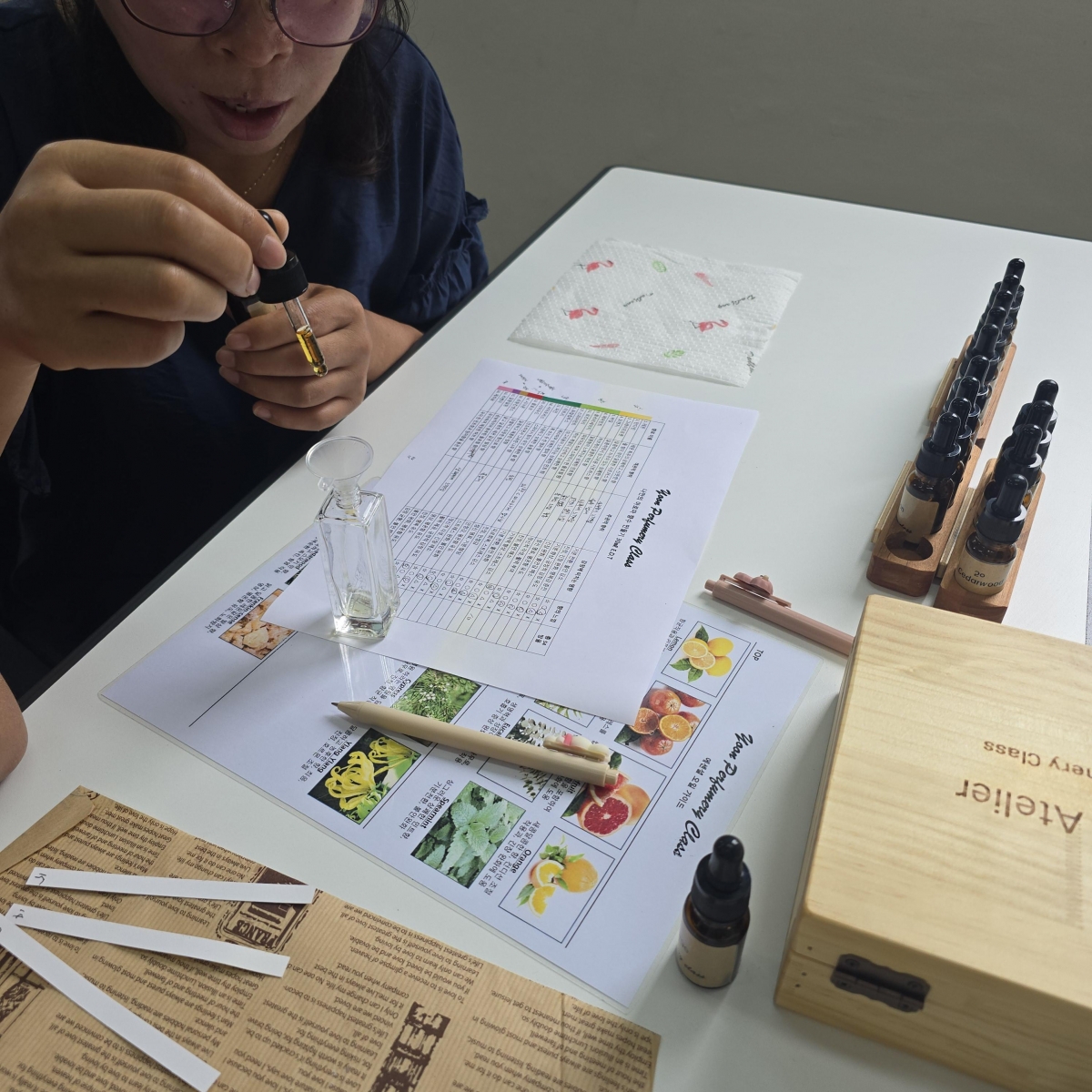 이렇게 향을 맡아보며 나만의 향수를 만들어 봅니다.