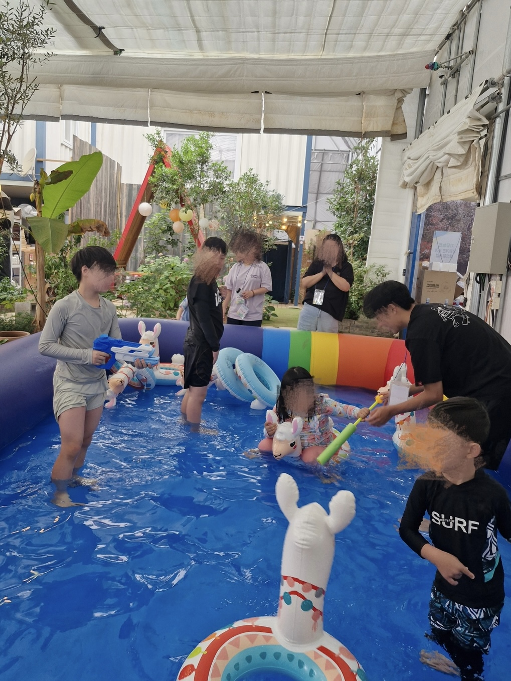 무더운 날씨 속에서도 아이들과 가족들은 시원한 물 속에서 신나게 뛰놀며 에너지를 발산했습니다.