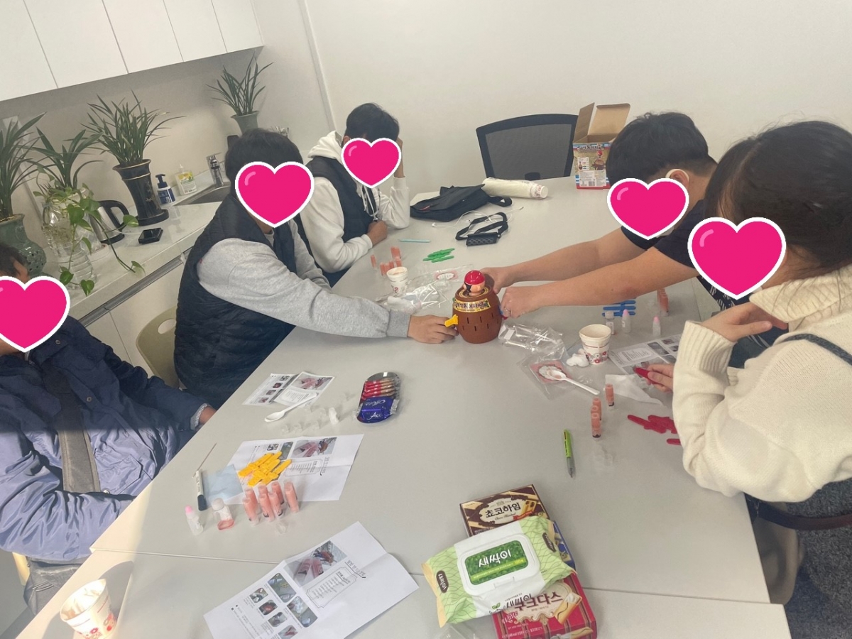 립밤이 굳는 시간 동안에는 다같이 보드게임을 하여 뒷정리 당번을 정하고, 립밤이 만들어진 후에는