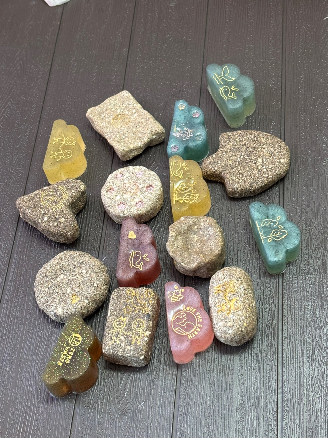 커피찌꺼기를 리싸이클링한 비누로 친환경적이면서 비누의 커피박이 박혀 또 다른 아름다움이 표현 되었습니다.