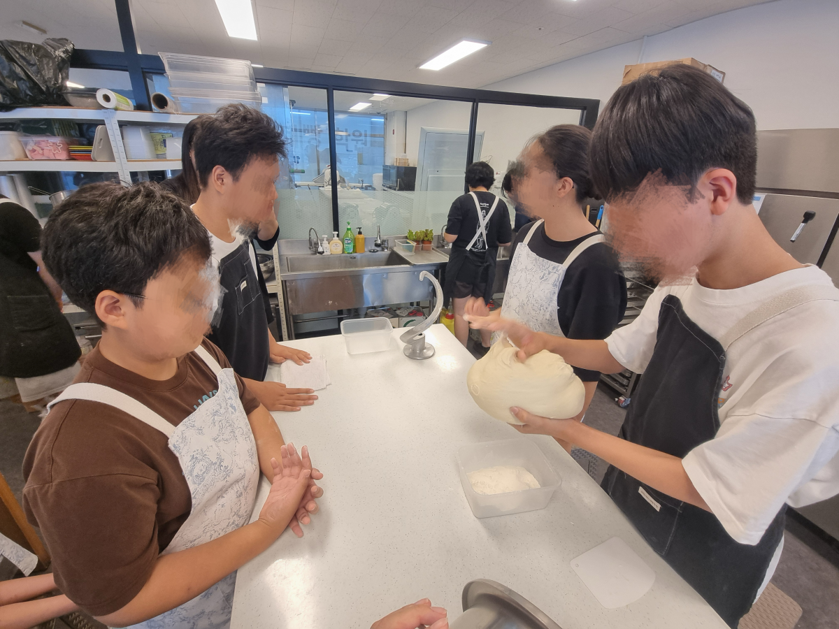먼저 반죽기에 반죽을 돌린 뒤. 직접 손으로 둥글리기를 하며 제빵의 기본 과정을 익혔습니다.