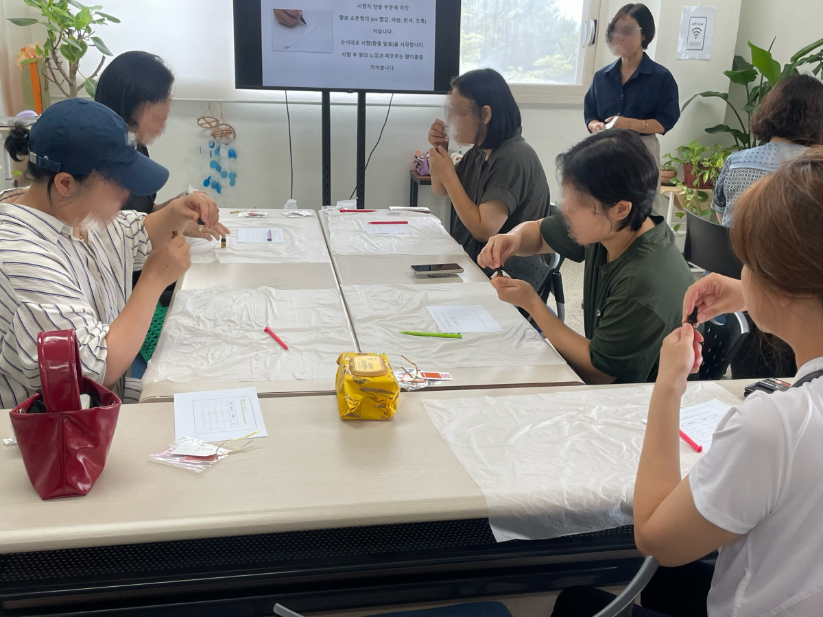 컬러와 아로마 주제로 이야기를 나누는 모습입니다 ~