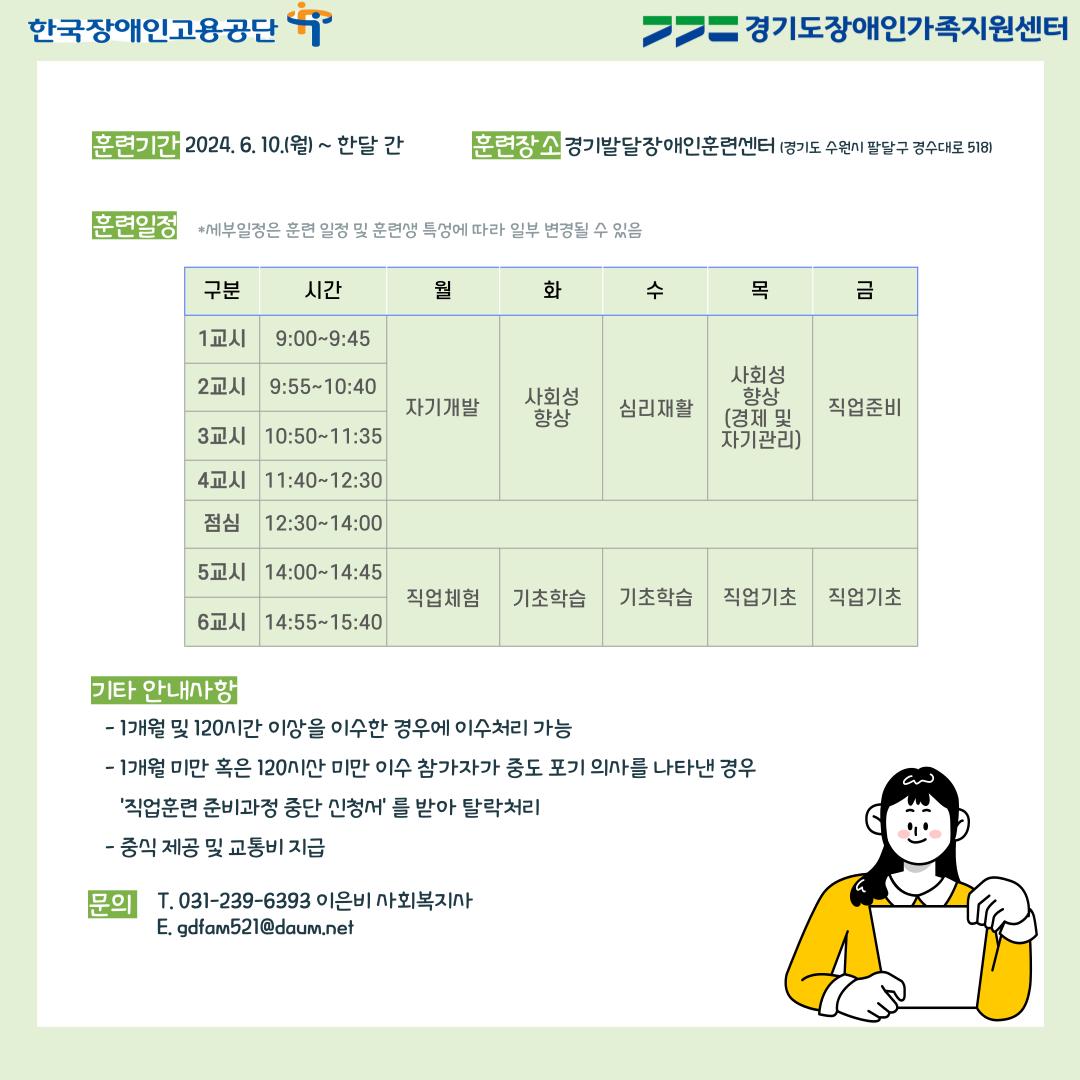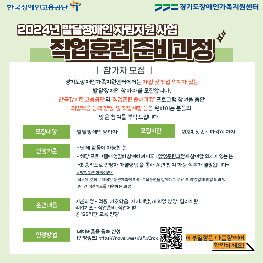 2024년 발달장애인 취업교육(직업훈련 준비과정) 참여자 모집 및 홍보