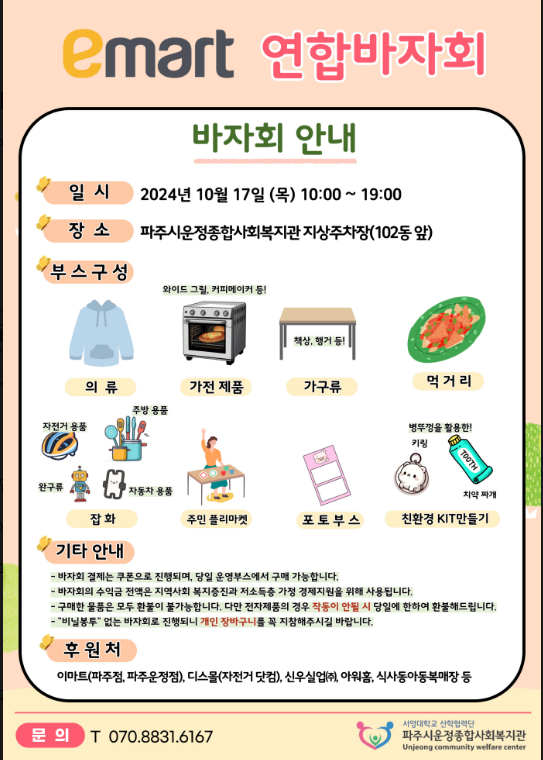 [홍보] 파주시운정종합사회복지관 이마트 연합 바자회