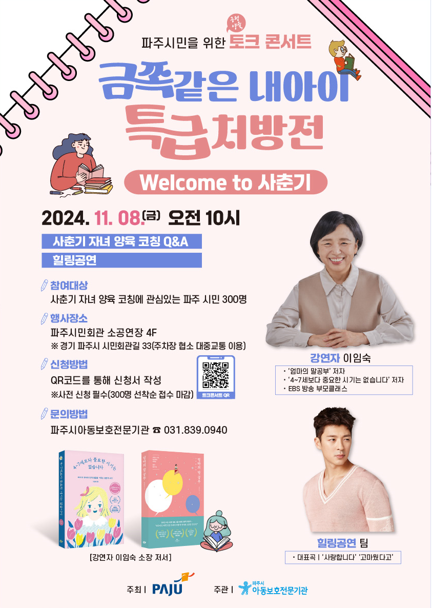 [홍보] 파주시아동보호전문기관, "금쪽같은 내 아이 특급 처방전" 토크콘서트 참여 안내