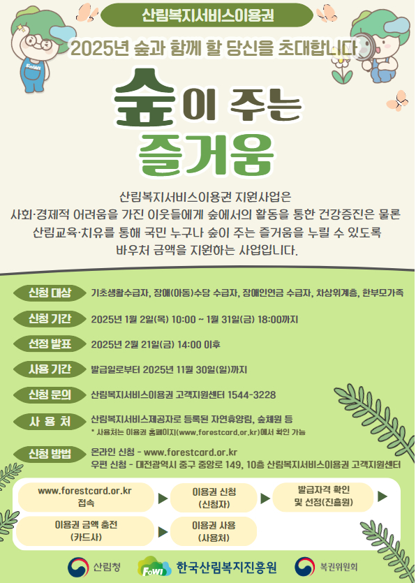 [홍보] 2025년 산림복지서비스이용권 신청접수 공고