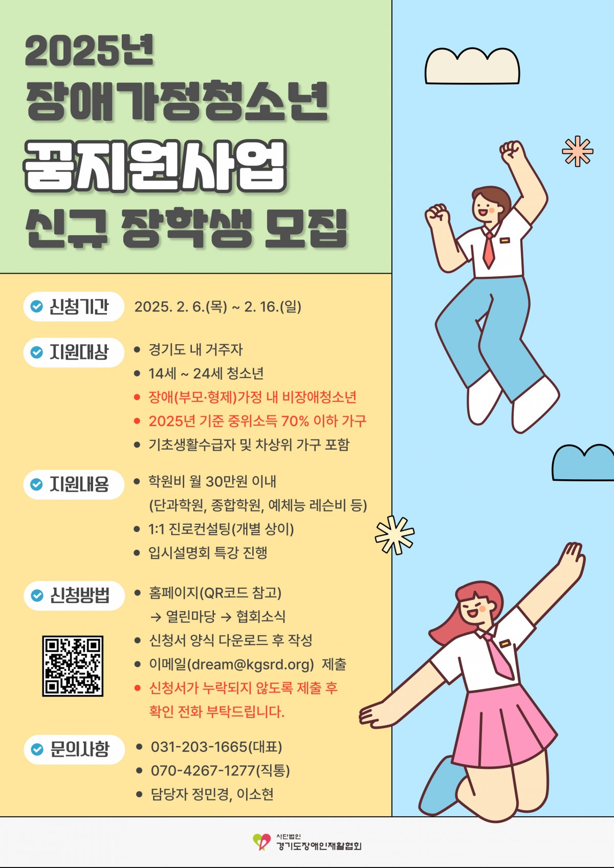 [홍보] 2025년 장애가정청소년 꿈지원사업 신규 장학생 모집