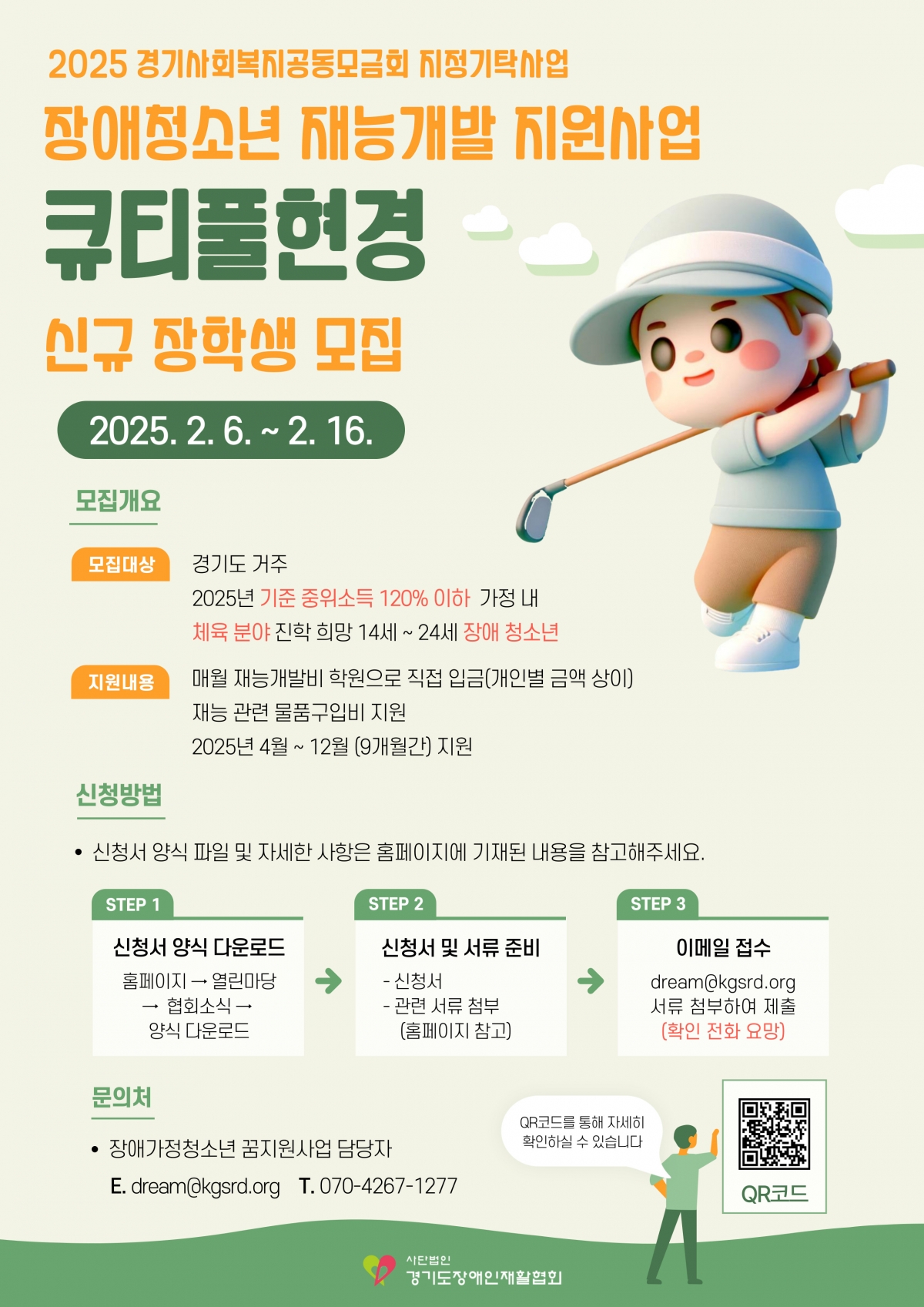 [홍보] 장애청소년 재능개발지원사업 큐티풀현경 신규 장학생 모집