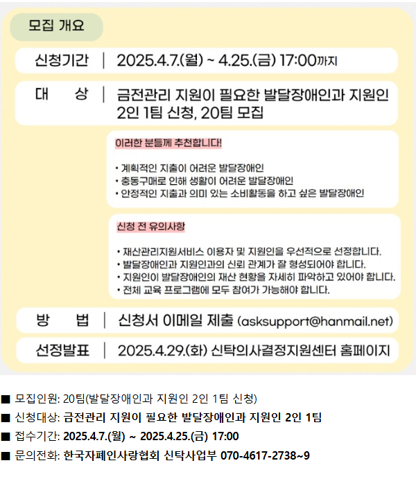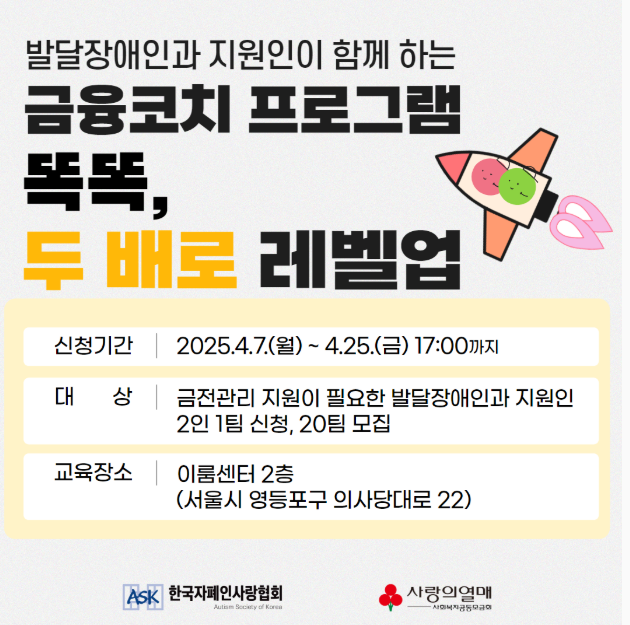[홍보] 발달장애인과 지원인이 함께 하는 금융코치 프로그램 참여자 모집