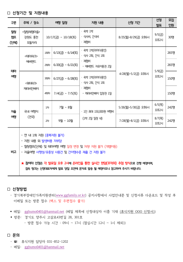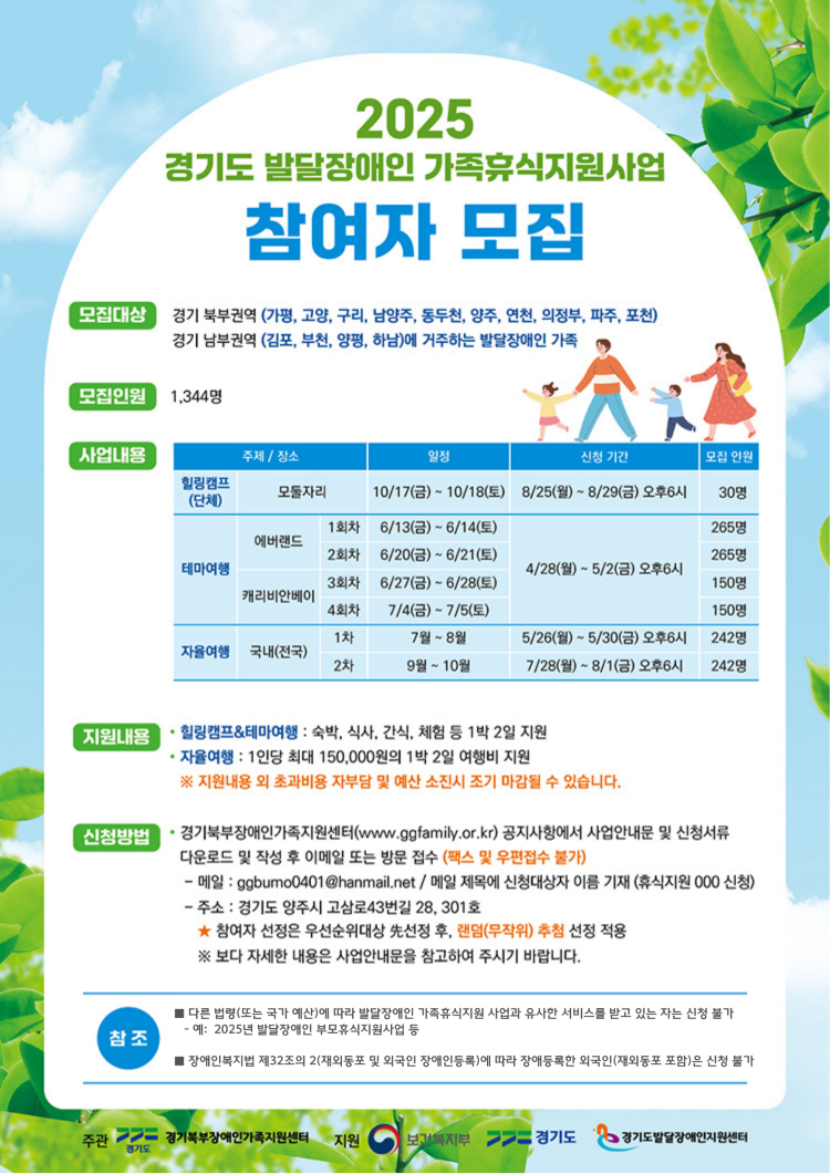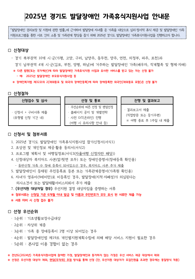 [홍보] 2025 경기도 발달장애인 가족휴식지원사업 참여자 모집