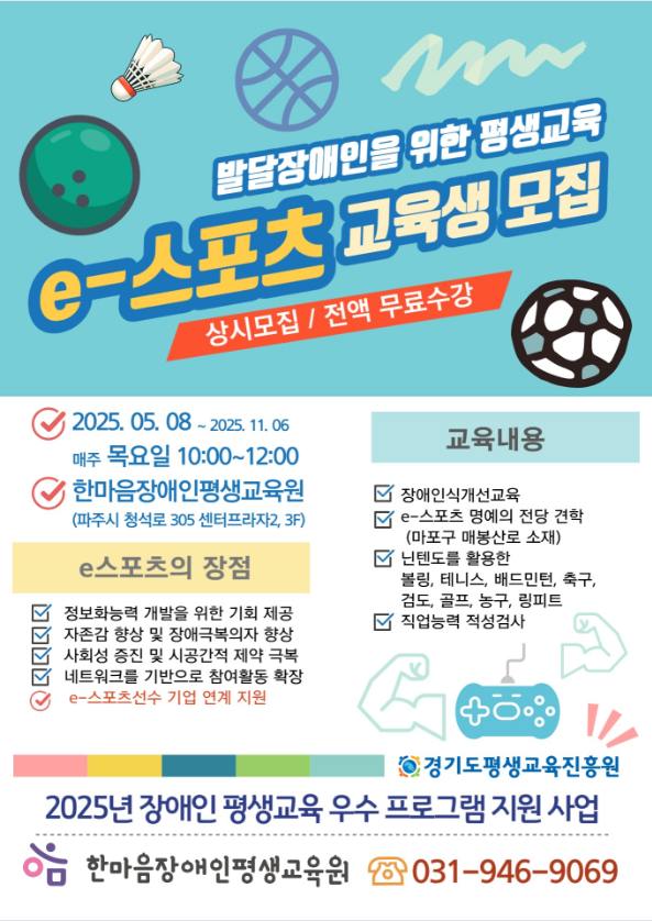 [홍보] 발달장애인을 위한 평생교육 e-스포츠 교육생 모집
