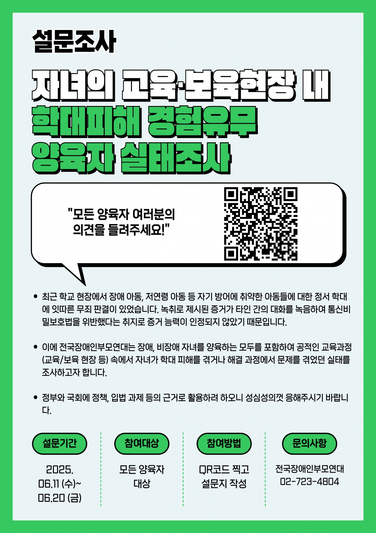 [설문조사] 자녀의 교육, 보육현장 내 학대피해 경험유무 양육자 실태조사