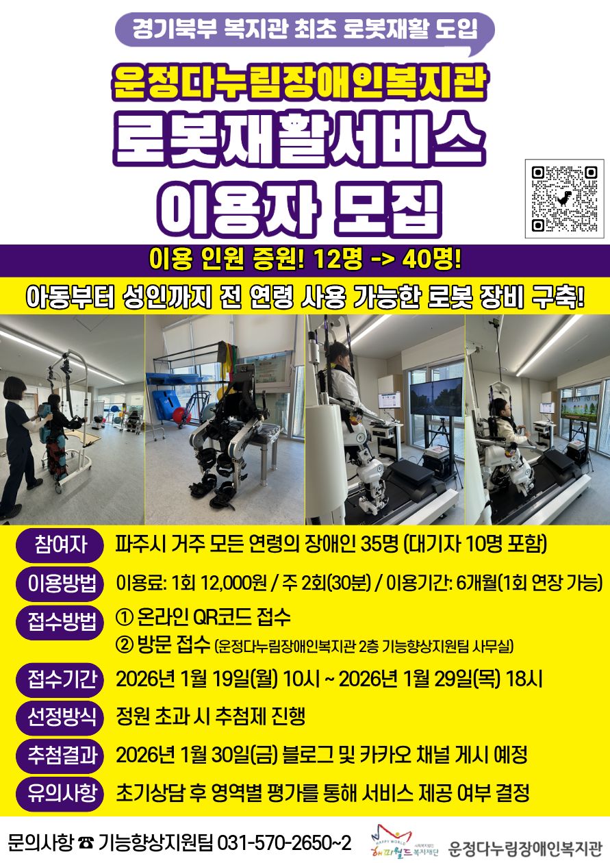 [홍보] 2026년 운정다누림장애인복지관 로봇재활 이용자 모집 안내