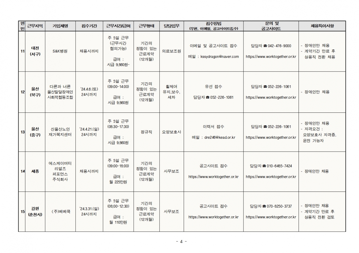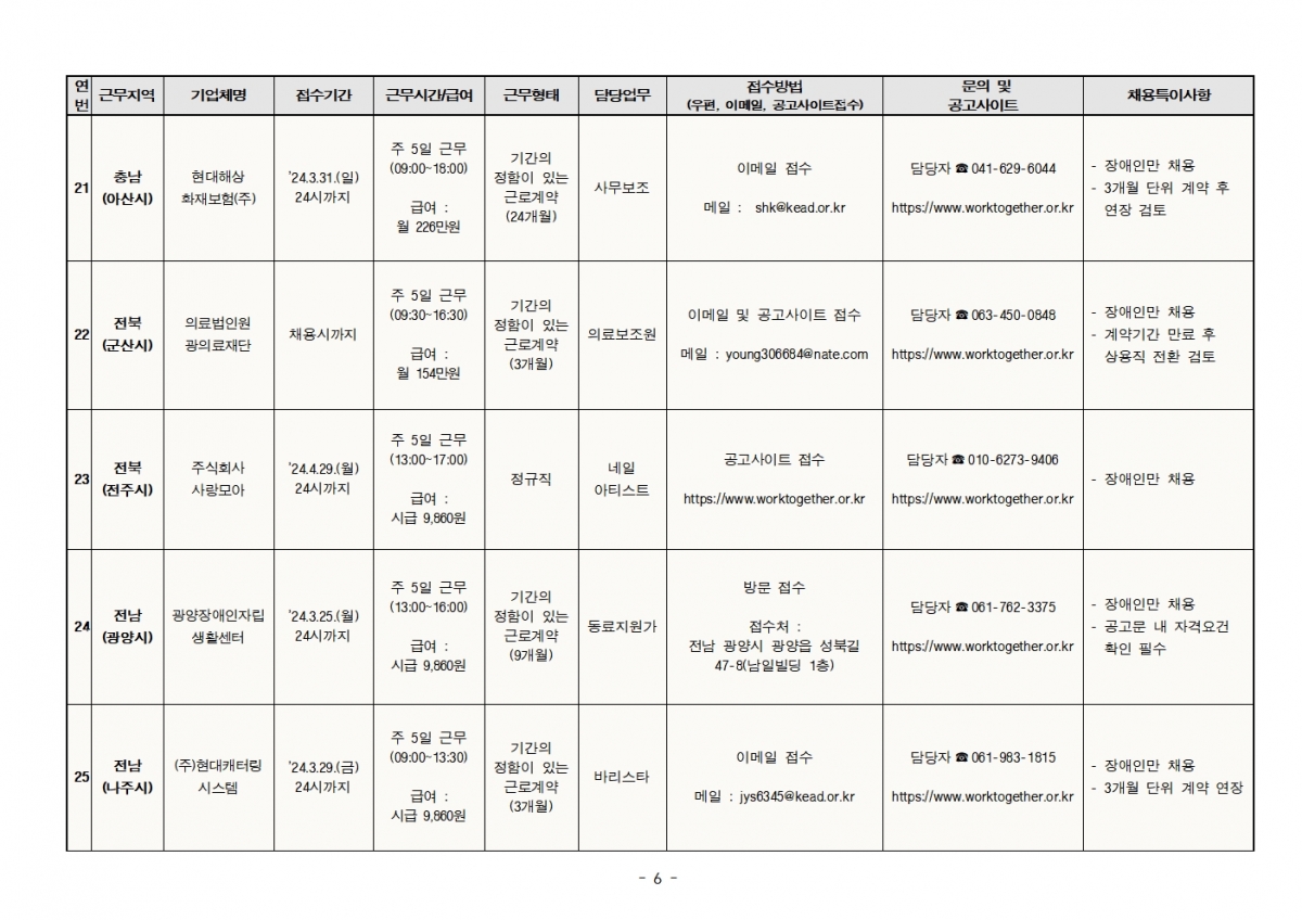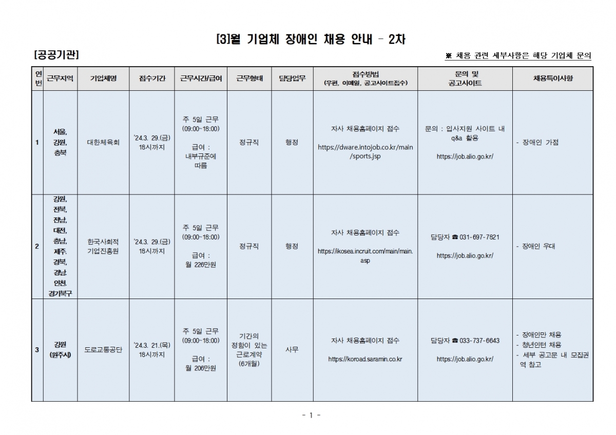 2024년 장애인 채용 취업 정보(24년 3월 2차)