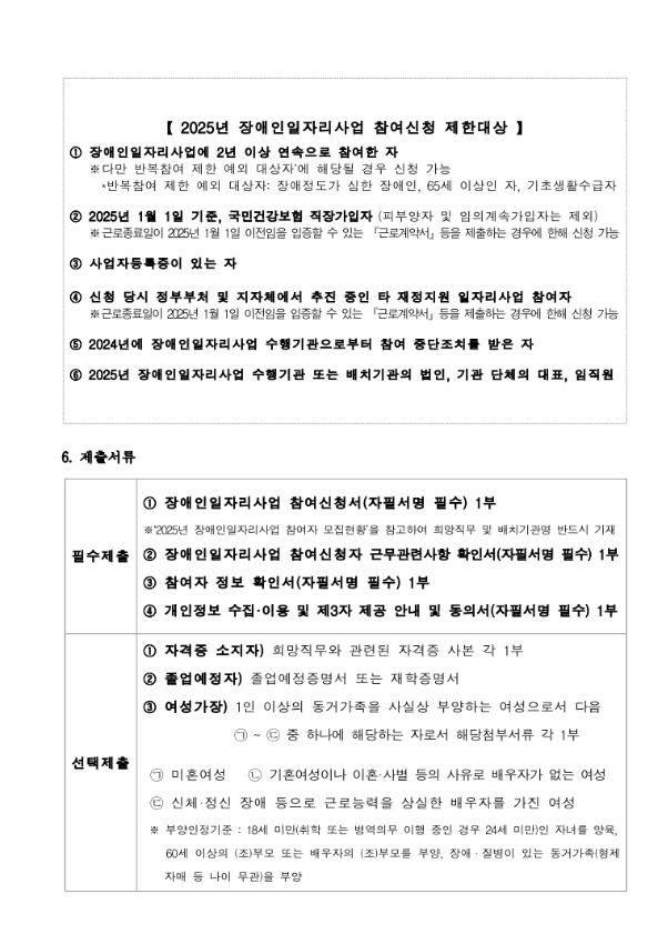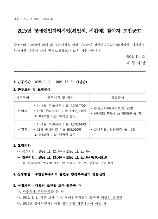 2025년 파주시 장애인일자리(전일제, 시간제) 참여자 모집공고