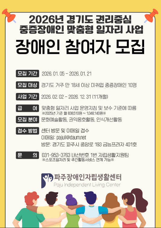 [참여자모집] 2026년 경기도 권리중심 중증장애인 맞춤형 일자리 사업